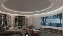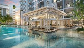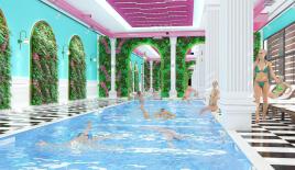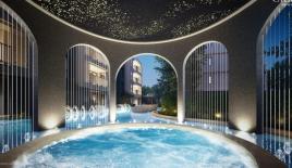 Вход на территорию комплекса по картам. На ерритории есть поющие фонтаны, плавучий мост, 8 джакузи, инфинити бассейн и прочее. Подземная парковка на 300 мест.