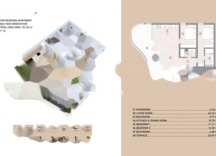 Предлагаем вашему вниманию просторную квартиру площадью 130 м² в новопостроенном доме, отличающемся современным архитектурным стилем с элементами рустики. Квартира располагается на первом этаже и включает в себя две спальные комнаты, просторную ванную с дополнительным гостевым туалетом, а также открытое пространство, объединяющее кухню, столовую...