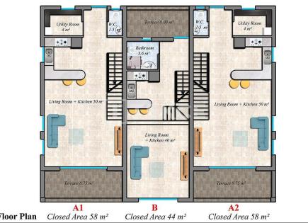 Сдвоенные дома в 100 м от моря в Гирне, Северный Кипр Гирне — один из самых привлекательных районов Северного Кипра, славящийся своим красивым побережьем, природными ландшафтами и насыщенной культурной жизнью. Бахчели, тихий район Гирне, идеально сочетает уединение с близостью к пляжу и живописным видам, что делает его отличным выбором как для...