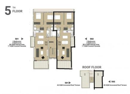 Продается дуплекс площадью 205 кв.м В Ларнаке на стадии строительства. Дуплекс расположен на 2 уровнях. Пятый этаж состоит из гостиной, одной кухни, одного санузла, одной кладовой. Шестой этаж состоит из 3 спальных комнат, одной ванной комнаты, одной душевой комнаты. У объекта есть солнечные батареи для нагрева воды, кондиционер, зона барбекю,...