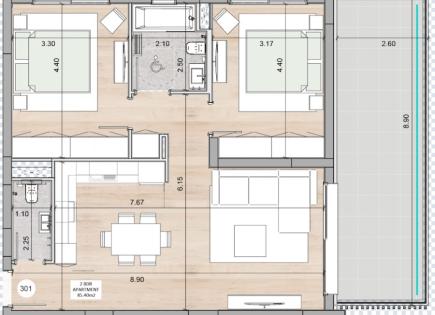 300 000€ за апартамент с полной отделкой для получения ПМЖ по ускореной процедуре получения ПМЖ и всего 3 минуты пешком до моря, до песчаного оборудованного пляж, эвкалиптовая роща пляжа Дасуди !