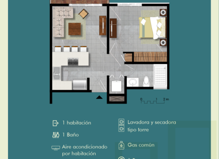 Расположен в Bayahibe, где сосредоточены основные современные застройки, представляем вам новую квартиру с одной спальней, полностью готовую к заселению и находящуюся всего в 5 минутах от пляжа. 1 спальня+ гостиная, санузел Частная парковка Бытовая техника включена: кондиционеры, встроенная плита, вытяжка Установлен сейф Жилой комплекс...