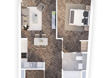 1 bed, 1 bath, 360 sq. ft; Эта безупречная студия просторная и светлая, с выходом на частную террасу. Кухня спроектирована по принципу просторной открытой планировки. Деревянные полы гармонично сочетаются с гостиной, а в кухне предусмотрена встроенная откидная кровать и современные шкафы с подсветкой под столешницей. Комплекс Terrace...