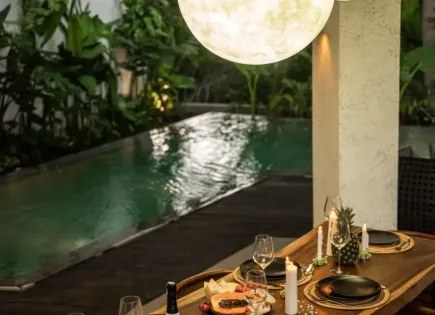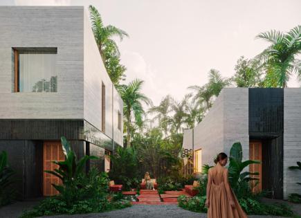Коллекция из четырёх дизайнерских вилл с 2 спальнями в районе Бабакан, Чангу, где эстетка модернистского Лос‑Анджелеса встречается с тропической атмосферой Бали. Одноэтажные дома с панорамным остеклением объединяют закрытую гостиную и террасу с большим бассейном, создавая плавный переход между интерьером и садом. ​ В каждой вилле:...