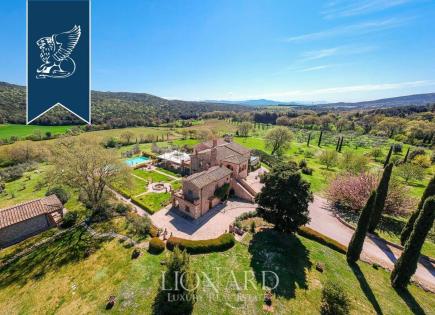 На продажу выставлено поместье на территории фермы площадью более 20 га, расположенное на холме, на границе между Лацио и Тосканой, Некогда старинная каменная усадьба постройки 17 века сегодня представляет собой гостиничный вип комплекс с бассейном, джакузи и панорамным видом. Площадь помещений отеля составляет 1500 кв. м. и включает в себя...