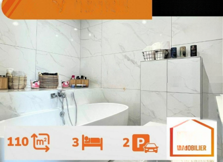 surface: 110 m², rooms: 3, bathrooms: 2, garages: 2 ✓ Этаж: 3 ✓ Лифт: Да ✓ Количество комнат: 7 ✓ Год постройки: 2017 ✓ Реконструировано: Да ✓ Доступ для маломобильных: Да ✓ Отдельная кухня: Да ✓ Отдельный туалет: 1 ✓ Закрытая парковка: 2 ✓ Балкон: 4.5 м² ✓ Энергокласс: B ✓ Класс теплоизоляции: B ✓ Отопление газом: Да...