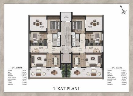 Продажа 4+1 loft duplex 200 m2 CASABA комплекс премиум-класса Гюрсу, Коньяалты, Анталия О квартире — ЖК премиум от топ-застройщика — В продаже с мебелью и техникой — «Умный дом» — Отдельная кухня, 2 санузла, гардеробная, терраса и балкон — Тёплые полы (газ), инвекторные кондиционеры...
