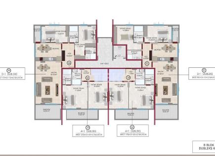Жилой комплекс в Алании Новый уникальный проект жилого комплекса в Алании. Расположен на расстоянии 450 метров от пляжа Клеопатры и в шаговой доступности от всей инфраструктуры города. Предлагаются квартиры в 2 комплексах по 2 блока в каждом 1+1 квартира (67,5 кв.м.) 2+1 квартира (от 80 кв.м. до 81,6 кв.м.) 3+1 квартира (94 кв.м. + 80 кв.м.) 2+1...
