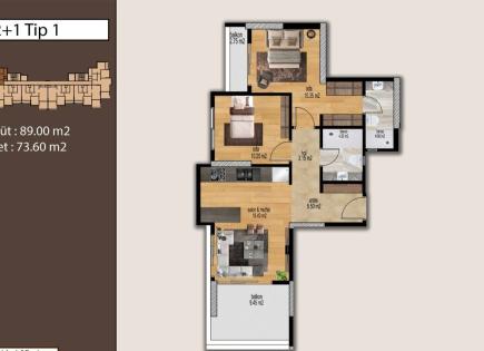 Проект в прекрасном городе Мерсин «CONCEPT» Общие характеристики: Центральная система отопления - теплый пол Используются блоки с повышенными теплоизоляционными свойствами Современная система лифтов Генератор полного цикла Характеристика квартир: Подвесной потолок Кухонный гарнитур Шкаф в прихожей Мебель в...
